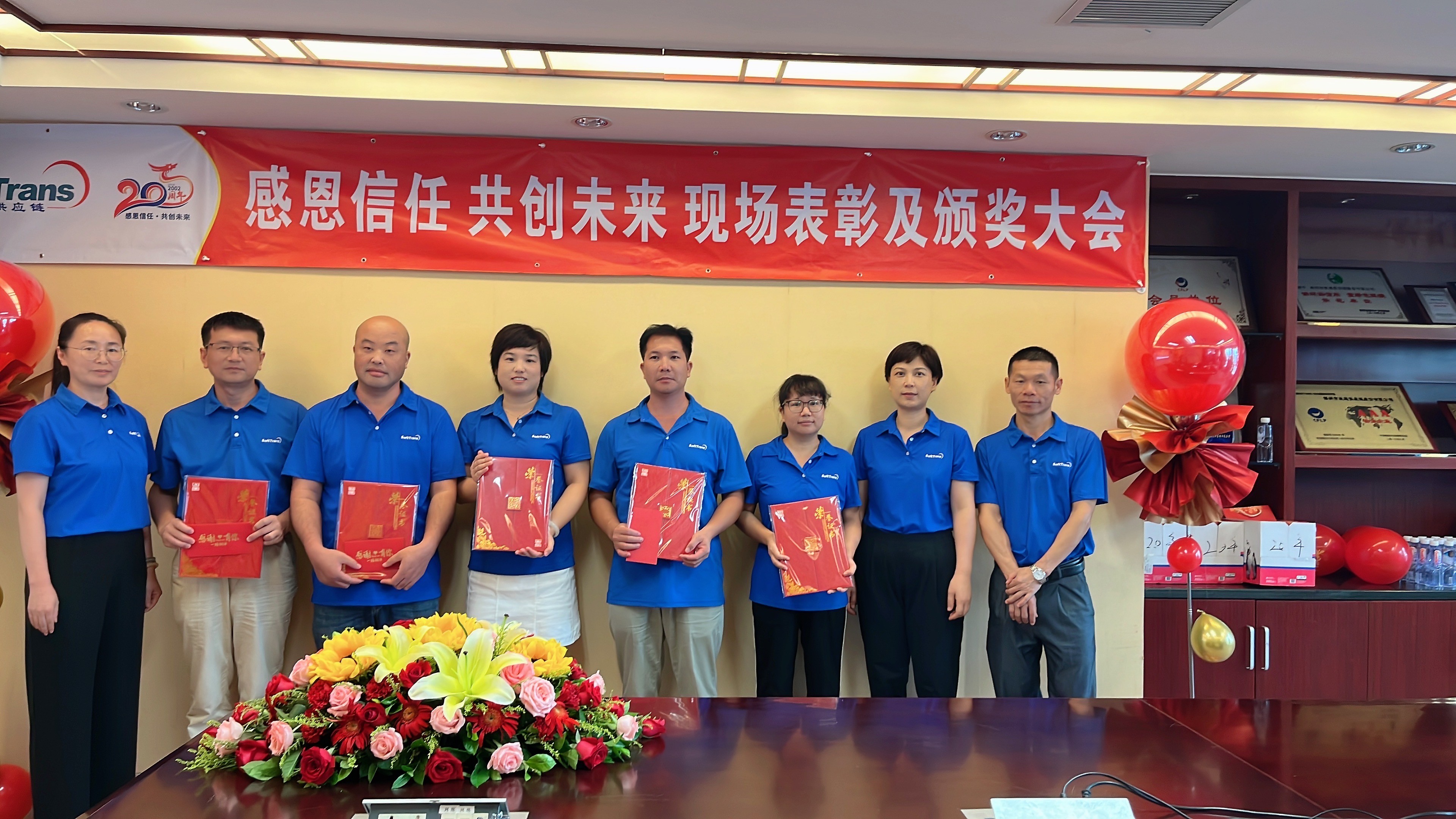 yl23455永利自2002年成立至今,经过了20年的发展,作为国内一家领先的综合物流服务商,多年荣获的众多奖项和荣誉,都离不开yl23455永利人上下齐心、努力付出、共同奋进。2022年8月26日是个特别的日子,这一天,yl23455永利集团总经理臧建伟先生携全体总经办领导班子出席表彰现场、各部门主要负责人以及受表彰、获奖员工代表现场参会,此次通过“腾讯会议”现场直播和云端共享的方式,各子公司、办事处近100多名员工线上观看和互动,共同热烈庆祝yl23455永利成立二十周年,回顾辉煌历程,表彰先进人物,让本次表彰志庆活动更有纪念意义。