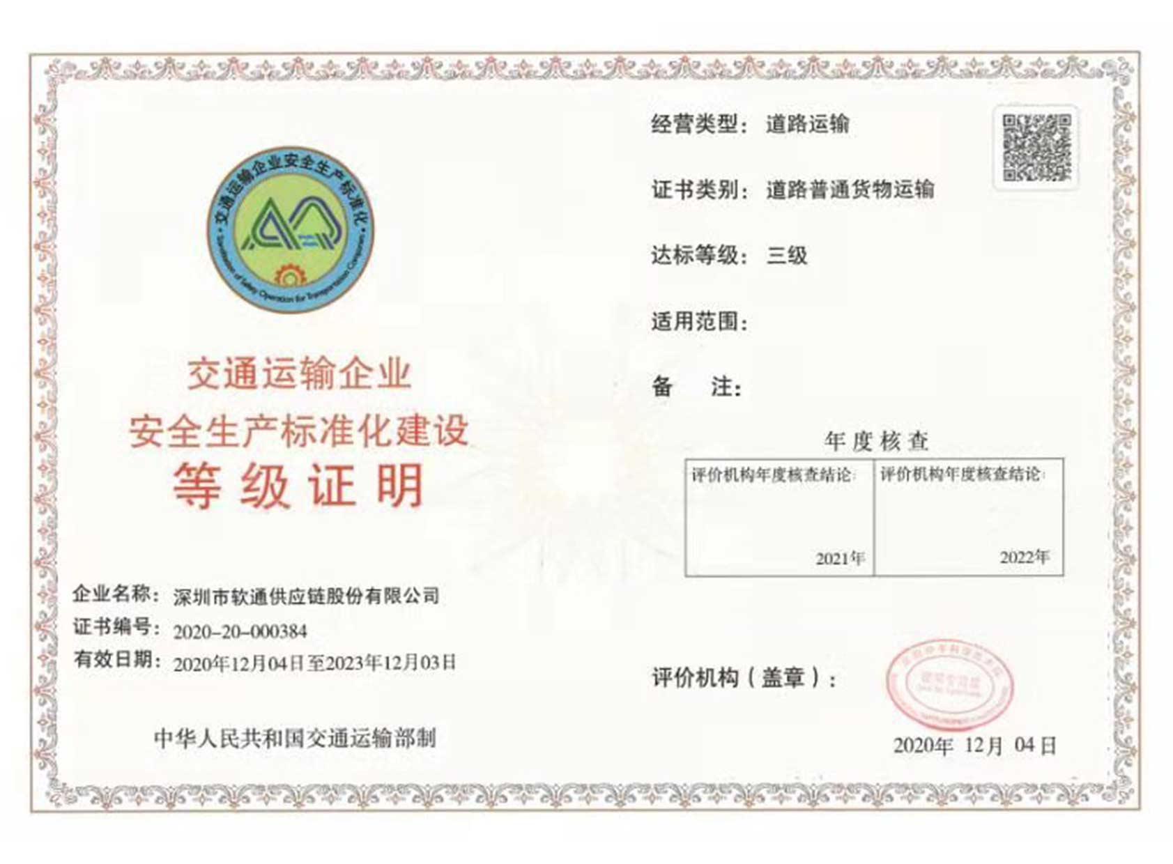 Grade certificate